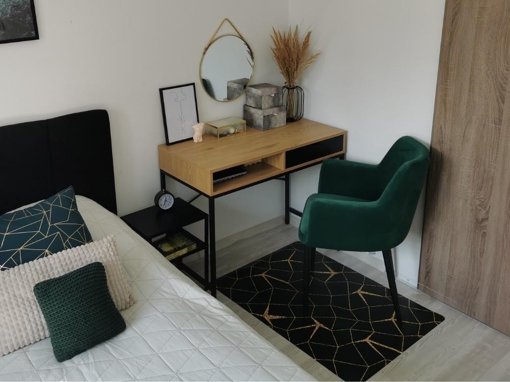 Das wichtigste Ausstattungselement bleibt natürlich der Schreibtisch. In kleinen Wohnungen ist ein Modell mit leichter Form, das nicht erdrückt und sich gut in einen kleinen Raum einfügt, eine hervorragende Lösung. Steht dir hingegen ein separater Raum oder ein größeres Arbeitszimmer zur Verfügung, kannst du dir eine großzügigere Arbeitsplatte, zusätzliche Schubladen oder eine Kombination mit Regalen und Schränken zur Aufbewahrung von Dokumenten leisten. Am besten wählt man Möbel, die funktional sind und gleichzeitig gut mit der übrigen Einrichtung harmonieren.